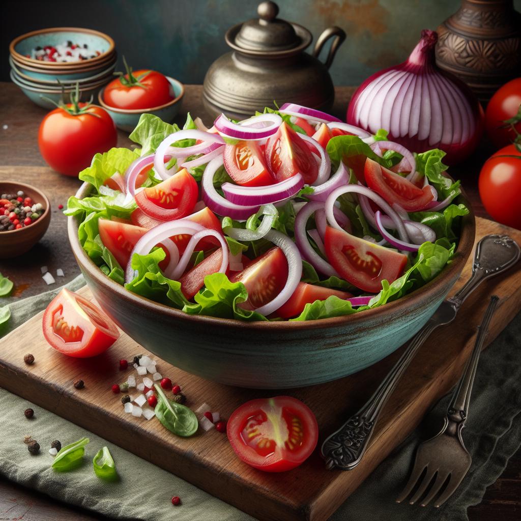 Fresh Salad with Lettuce Tomatoes and Onions